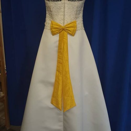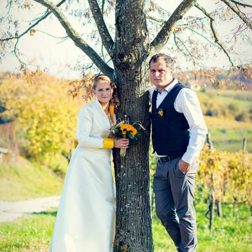 “K Sonji sva prišla dokaj pozno naročiti poročno obleko zame in za moža. Ne glede na časovni okvir je Sonja vse naredila vrhunsko. Brez napake. Še svetovala mi je glede ostalih stvari, recimo katere čevlje naj si kupim, da bodo pasali zraven.”